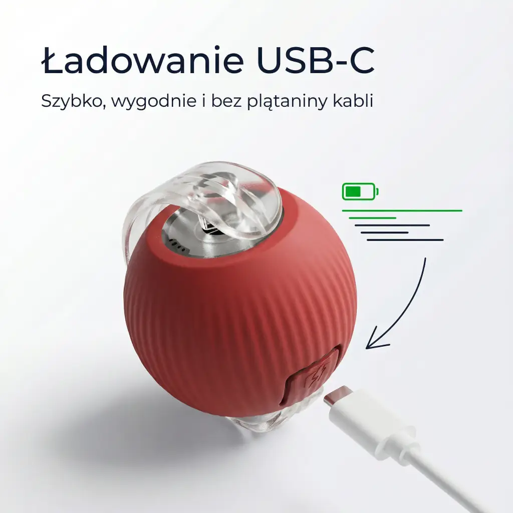 Po krótkim ładowaniu TurboKula potrafi dać długą zabawę (typowo nawet kilka godzin łącznie, zależnie od intensywności). To dokładnie ten typ zabawki, którą odpalasz i masz „zajętego” pupila bez ciągłego rzucania piłki.