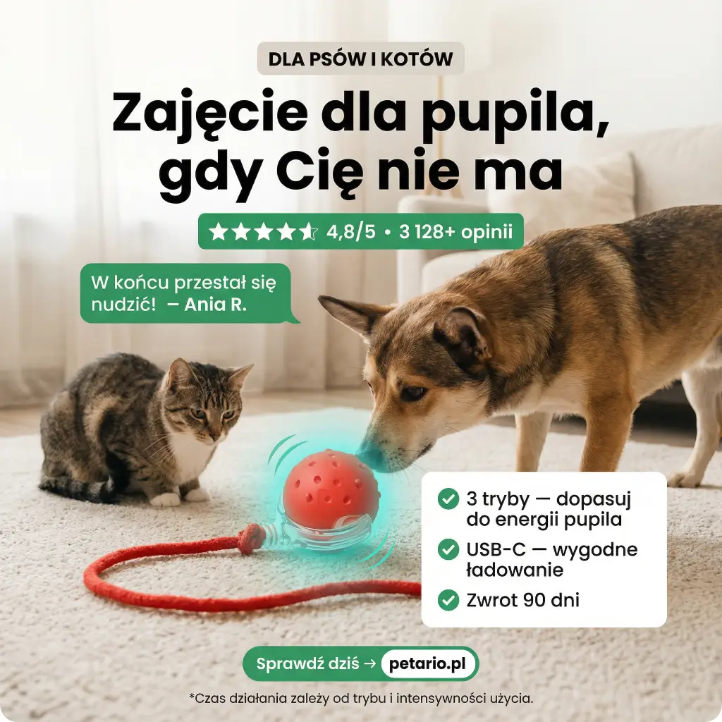 „Jedna z najlepszych zabawek dla psa i kota. Wystarczy włączyć i pupil od razu ma zajęcie — mniej nudy, mniej rozrabiania. Używam codziennie i serio polecam.”